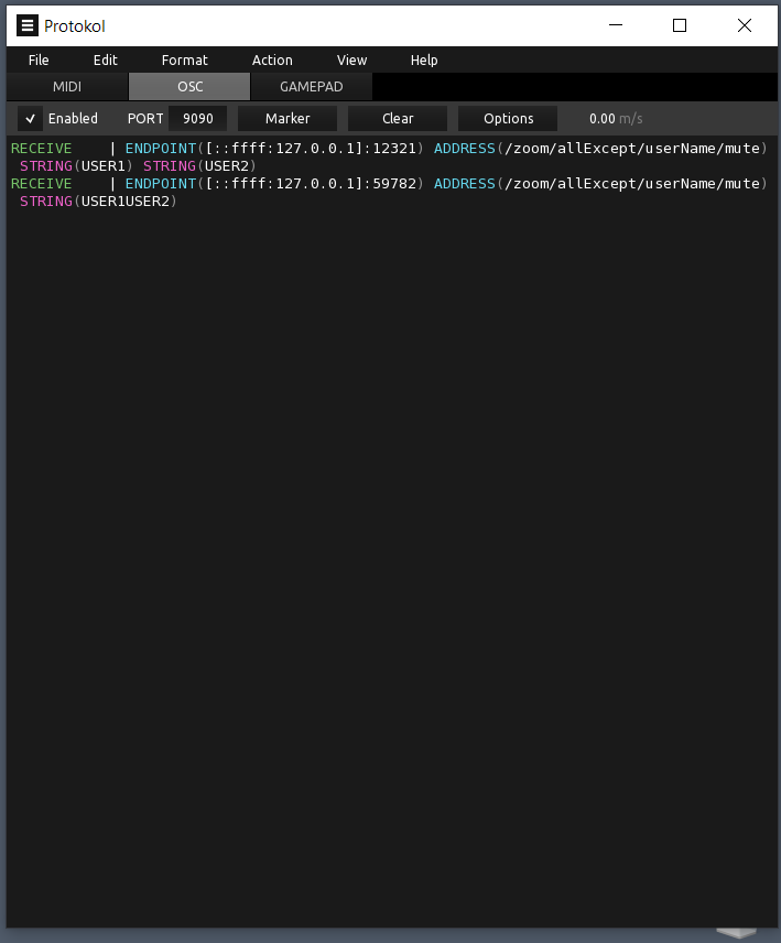 As you can see the message is (STRING) "USER1" (STRING) "USER2"